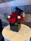 Celebra esa ocasión especial con nuestro hermoso arreglo de veinte (20) rosas rojas, acompañado de un par de chocolates Ferrero Rocher y con un birrete de graduación en una elegante (sujeto a disponibilidad) base de cerámica negra. Una combinación perfecta para demostrar amor y felicidad a esa persona especial. ¡Haz su día aún más memorable con Ailea 2024!