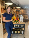 Dale un toque bendecido a tu mesa: la canasta de mimbre Blessed está llena de delicias florales y sorpresas gourmet. Incluye rosas, girasoles, lirios tigre y claveles para un lujo diferente! ¡Todo lo que necesitas para preparar una cena con encanto!