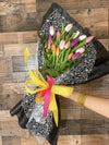 ¡Dile a esa persona especial cuánto la amas con este llamativo bouquet! El papel mallas envuelven unos coloridos tulipanes (30), dejando un detalle elegante y tierno. ¡Un impresionante regalo que no dejará indiferente!