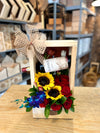 ¡Regala una experiencia única! Nuestro exclusivo arreglo Cuadro de Amor es el obsequio perfecto para exigentes. Esta caja acolchada incluye rosas, tulipanes, girasoles y dendrobiums (flor de orquídea), junto a una botella de vino tinto. ¡Un obsequio que nunca olvidarán!