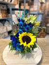 ¡Impresiona a tu amado con este Detalle Para Él! Un arreglo floral en la base de metal con una combinación única de rosas, tulipanes, solidagos, dendrobiums (flor de orquídea) y girasol para expresar tu cariño. ¡Un regalo perfecto para demostrar el amor que sientes!
